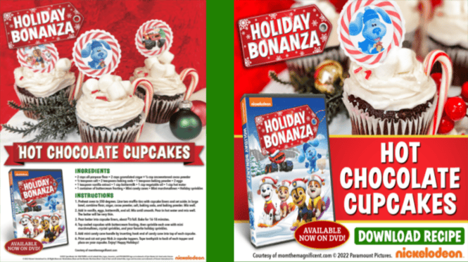 Make your holiday full of warmth and cheer! Check out this delicious recipe for some Hot Chocolate Cupcakes inspired by Nick Jr Holiday Bonanza, available now on DVD! Click the link to join the fun: