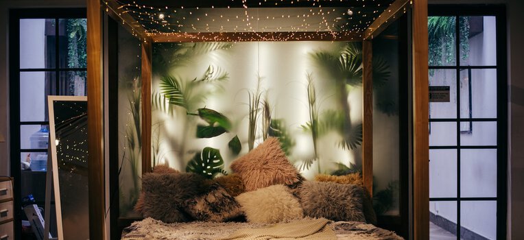 Pitch black or bright lights are not relaxing at all. Do you want that sweet spot where it’s a cozy warm glow and you can even emphasize this by adding candlelight? There are lots of different ways that you can work on the lighting in the bedroom. This can be done by implementing a dimmer switch into the main light in the ceiling so you can turn the lighting down to suit you and your preference. You can get lamps. around the room which will give a softer light than the ceiling light and you can also change that to a warm yellow glow with different bulbs. If you want very low light you could look at getting some candles and if you’re worried about the flames you can also get battery-powered candles now which don’t have a real flame and you can set them to turn on for a little bit of time add some of them even have a flicker motion so it looks like a real candle. The other way to make the room seem cozier in a lighting way is by having string fairy lights. You can put these whatever you want to arrange a ceiling around the bed head or anywhere that suits you. These also add a magical feel to it. And with string lights, you can get all different varieties. You get ones where the lights are and flowers or feathers as well as different characters like dinosaurs or ballerinas which are perfect for the kid’s rooms