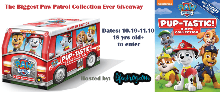 Welcome to the Pup-tastic Biggest Paw Patrol Collection Ever Giveaway! One winner will win this 8-DVD Collection Limited Edition Marshall’s Fire Truck.
