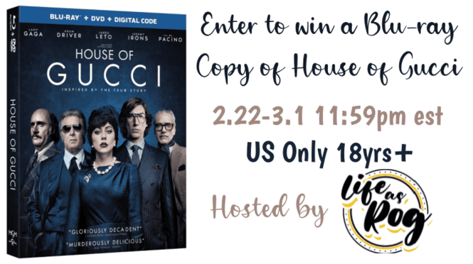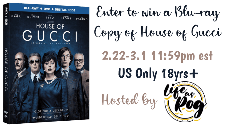 Welcome to our House of Gucci Blu-ray Giveaway. One lucky person will win a Blu-ray of their own to watch the movie in the comfort of their own home with their significant other, date, or by themself if they choose.